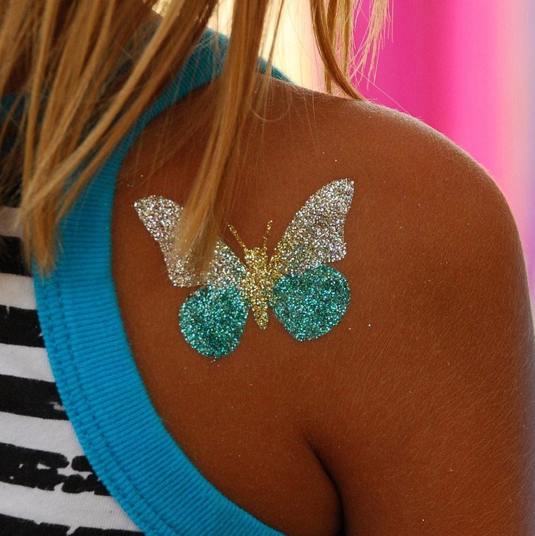 Также дети, особенно девчонки, оценят новую услугу - блеск-тату! Это блестящие татуировки, которые при бережном обращении останутся на коже до двух недель. Наносятся специальным гипоаллергенным клеем. Стоимость одной тату - 150 рублей!