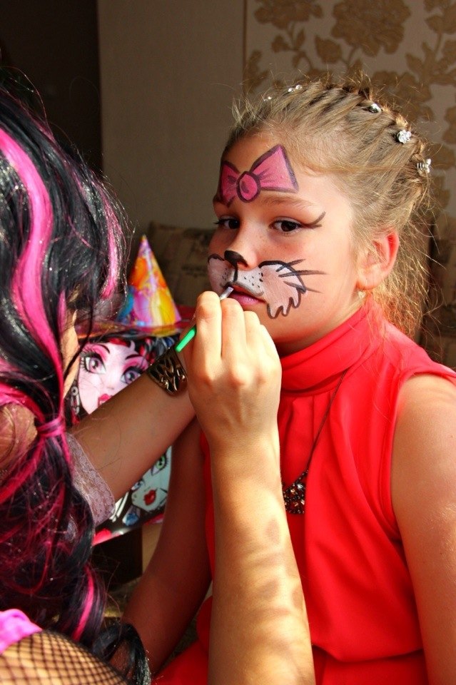 Детям очень нравится перевоплощаться в сказочных персонажей. А это легко сделать с помощью специальных красок для лица! Стоимость одной маски от 50 рублей. Имениннику всегда бесплатно!